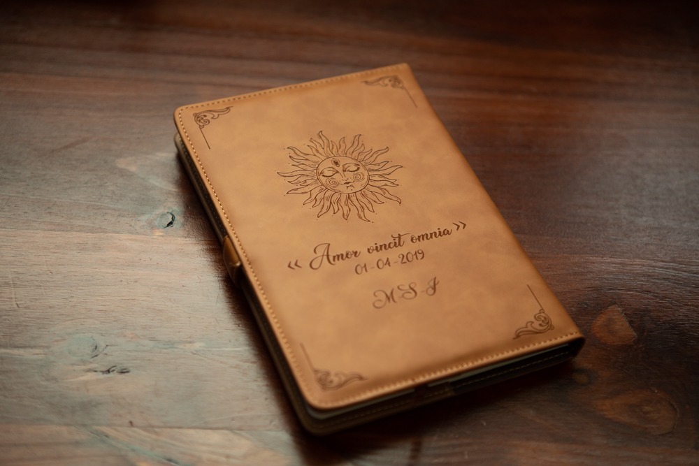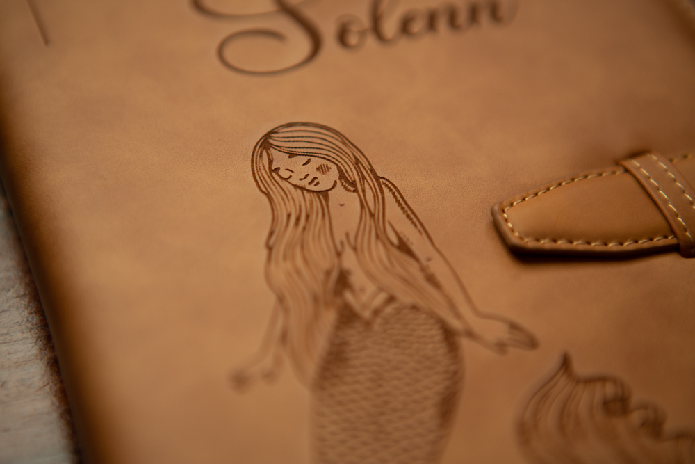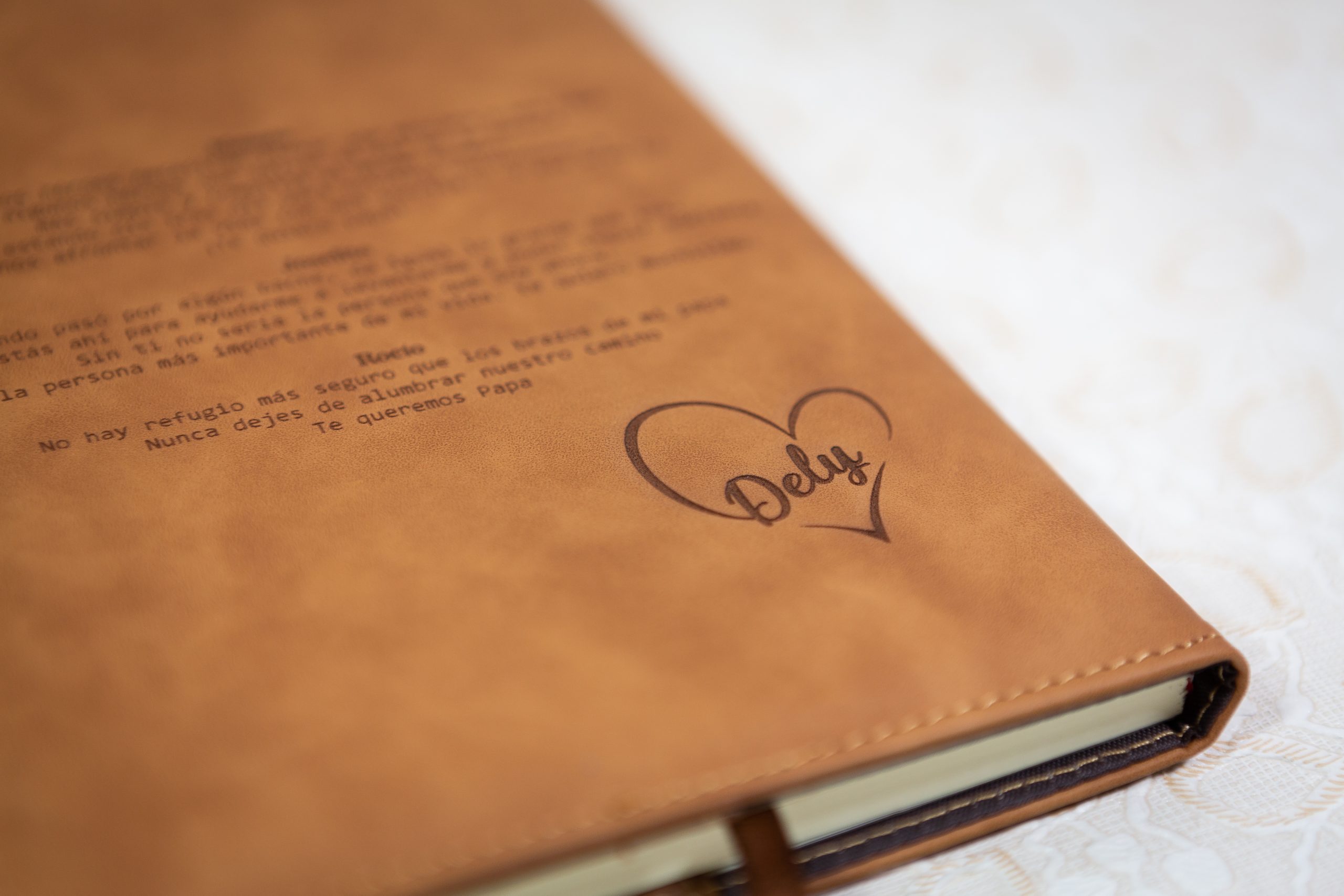 Lo que hace especial a esta libreta y diario personal A5 de cuerpo marrón es su posibilidad de personalización. Gracias a la tecnología de grabado láser de alta precisión, podemos plasmar en la cubierta nombres, logotipos, ilustraciones, frases motivadoras o cualquier diseño a medida.