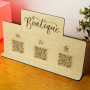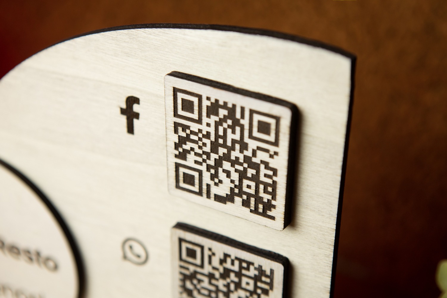 Expositor con 2 o 3 códigos QR para acceso directo a redes sociales, Instagram, whatsapp y tiktok o Reseñas de Google y Tripadvisor. Fabricado en madera natural personalizado con logo del negocio, una opción elegante y ecológica.