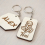 La versión de llaveros personalizados acabado Tostado están hechos en una madera multicapa de color claro que deja un efecto tostado marrón en su grabado muy elegante.