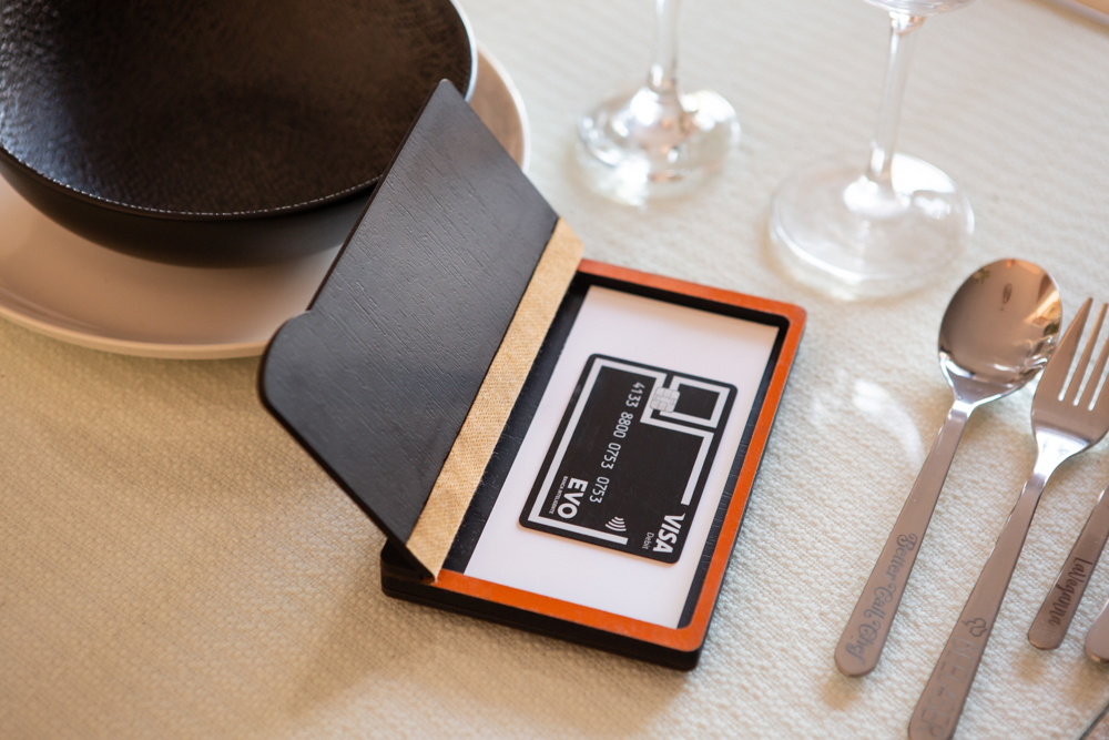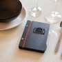 Su diseño tipo libro añade un toque sofisticado, y gracias a sus acabados en maderas nobles, podrás escoger el estilo que mejor combine con tu local. Personalizable con el logo del restaurante, es un accesorio práctico y duradero para el día a día en hostelería.