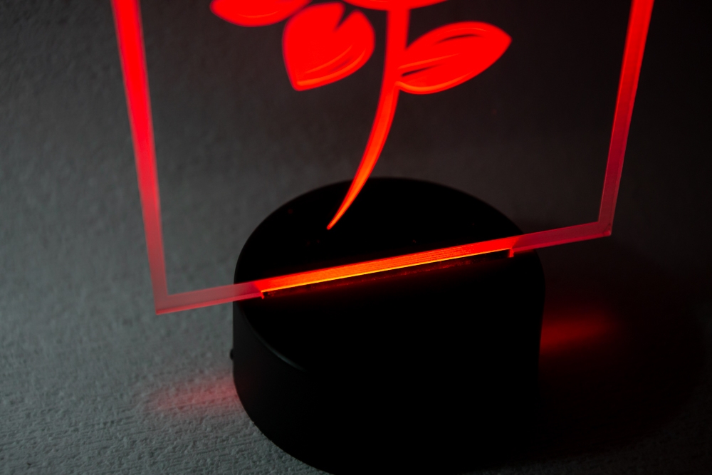 Sirve como lámpara led RGB decorativa para interiores ya que su base con iluminación Led RGB permite la retroalimentación de bajo consumo.
